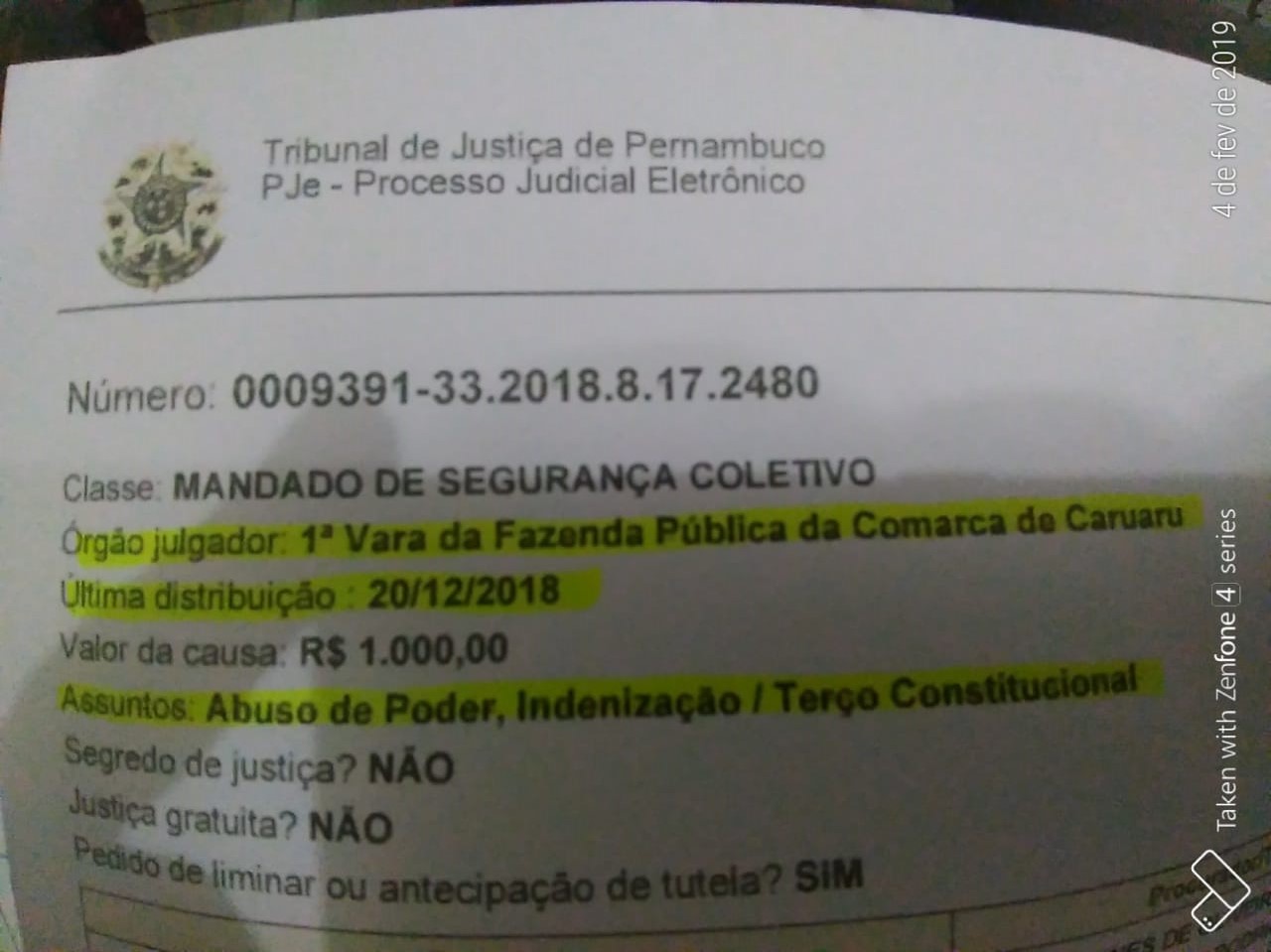 O Sindicato dos Servidores Municipais de Caruaru e Região Agreste de Pernambuco – SISMUC REGIONAL, impetrou no dia 21 de dezembro de 2018, na 1ª Vara da Fazenda Pública, um Mandado de Segurança Coletivo, em favos de todos os Professores associados ao Sindicato, com o intuito de garantir o pagamento de 1/3 de férias a esses servidores. Porém, a Oficiala de Justiça Alcione Maria da Silva, informou que não foi possível a entrega do Mandado de Segurança, alegando que a Destinatária (Prefeita Raquel Lyra), não se encontrava no momento da diligência, e não era sabido qual o horário de seu retorno. Segue texto da Certidão, na íntegra: “CERTIDÃO Certifico eu, Alcione Maria da Silva, Oficiala de Justiça desta Comarca, que cumprimento ao Mandado de MM. Juiz de Direito, em 11 do corrente precisamente as 10:13h, dirigi-me ao endereço indicado, e lá estando, fui informada pela Srª Vadênia Lucena, que a Destinatária não encontrava-se no momento da diligência, não sabendo precisar o dia e horário que a mesma retornará. Assim sendo, e havendo sido distribuído o presente Mandado em Regime de Plantão com prazo exíguo para o seu cumprimento, DEIXEI DE INTIMAR Raquel Lyra Teixeira e devolvo o presente Mandado para as providências cabíveis. Valendo salientar que o referido Mandado foi devolvido por esta oficiala de justiça na data supracitada e em face de problema no sistema, o mesmo permaneceu no meu painel, só observando tal falha nesta data. Assim sendo, devolvo o mesmo para providências cabíveis. O referido é a expressão da verdade, dou fé. Caruaru, 16 de janeiro de 2019.” ‘sic’
