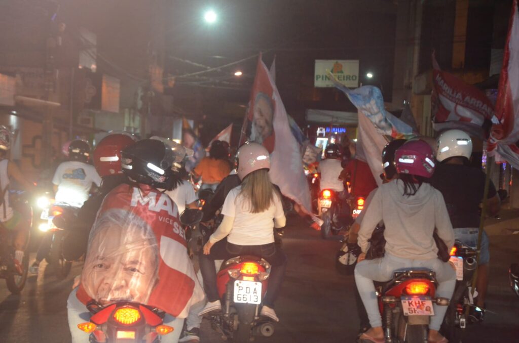 Jorge e Marília Arraes foram saudados com acenos e com as pessoas fazendo o “V” da vitória e o “L” de Lula Presidente. Nas calçadas, os moradores se aglomeraram para ver a carreata passar, muitas delas com bandeiras e fotos dos dois candidatos.