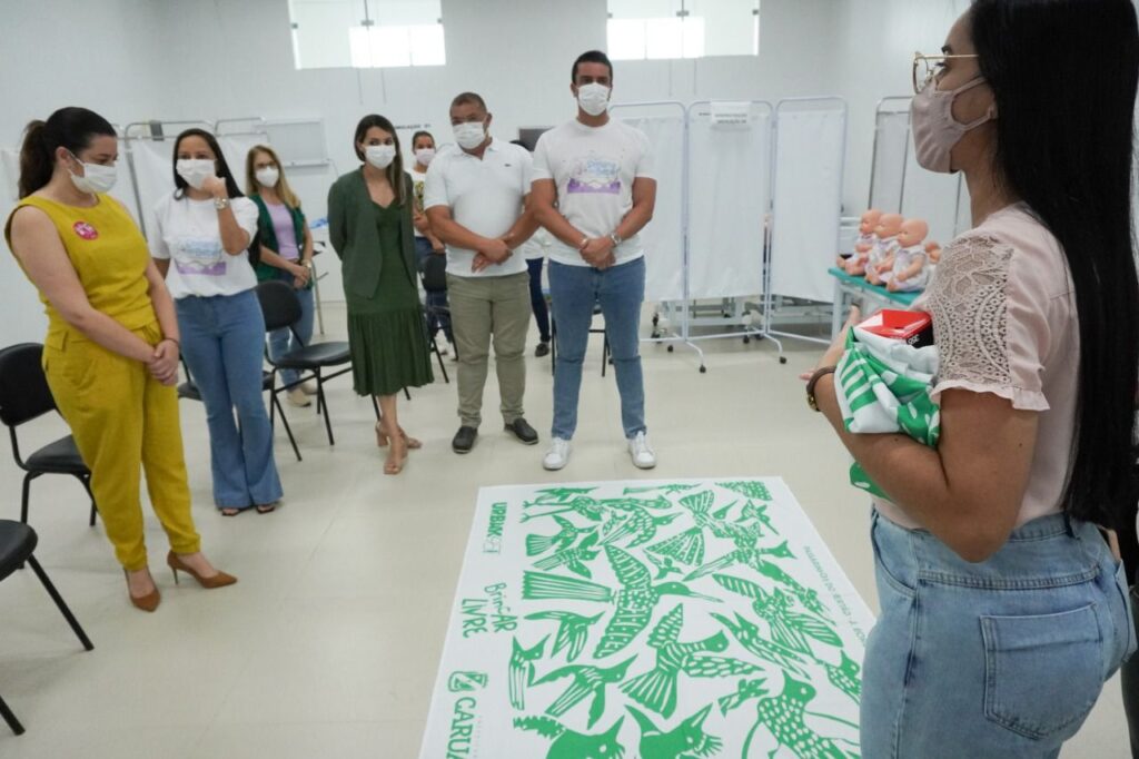 Entre as ações realizadas em alusão a Semana do Bebê está a entrega de um “panão”, tecido customizado, utilizado para incentivar o desenvolvimento das crianças e promover brincadeiras ao ar livre nas áreas abertas da cidade, como parques e praças.