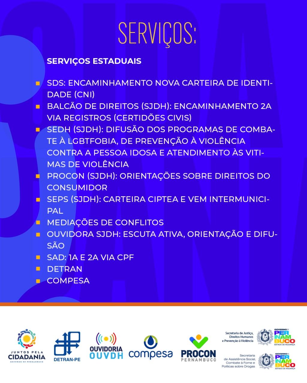 25 de setembro de 2025Caruaru se prepara para receber uma edição inédita e simbólica da ação Juntos pela Cidadania, promovida pela Secretaria de Justiça, Direitos Humanos e Prevenção à Violência (SJDH) em parceria com diversas secretarias estaduais. Desta vez, o evento terá como prioridade o atendimento e a escuta dos povos tradicionais — de terreiro, quilombolas, indígenas e ciganos — em uma ação que marca um novo capítulo na promoção de direitos e equidade social no estado de Pernambuco.