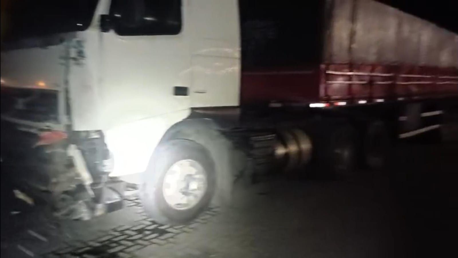 Foi uma colisão de uma carreta em um ônibus. A PRF suspeita que a carreta estava em uma borracharia de um posto de combustível, quando desceu desgovernada pra rodovia. Em seguida, o motorista do ônibus perdeu o controle do veículo, saiu da pista e tombou.