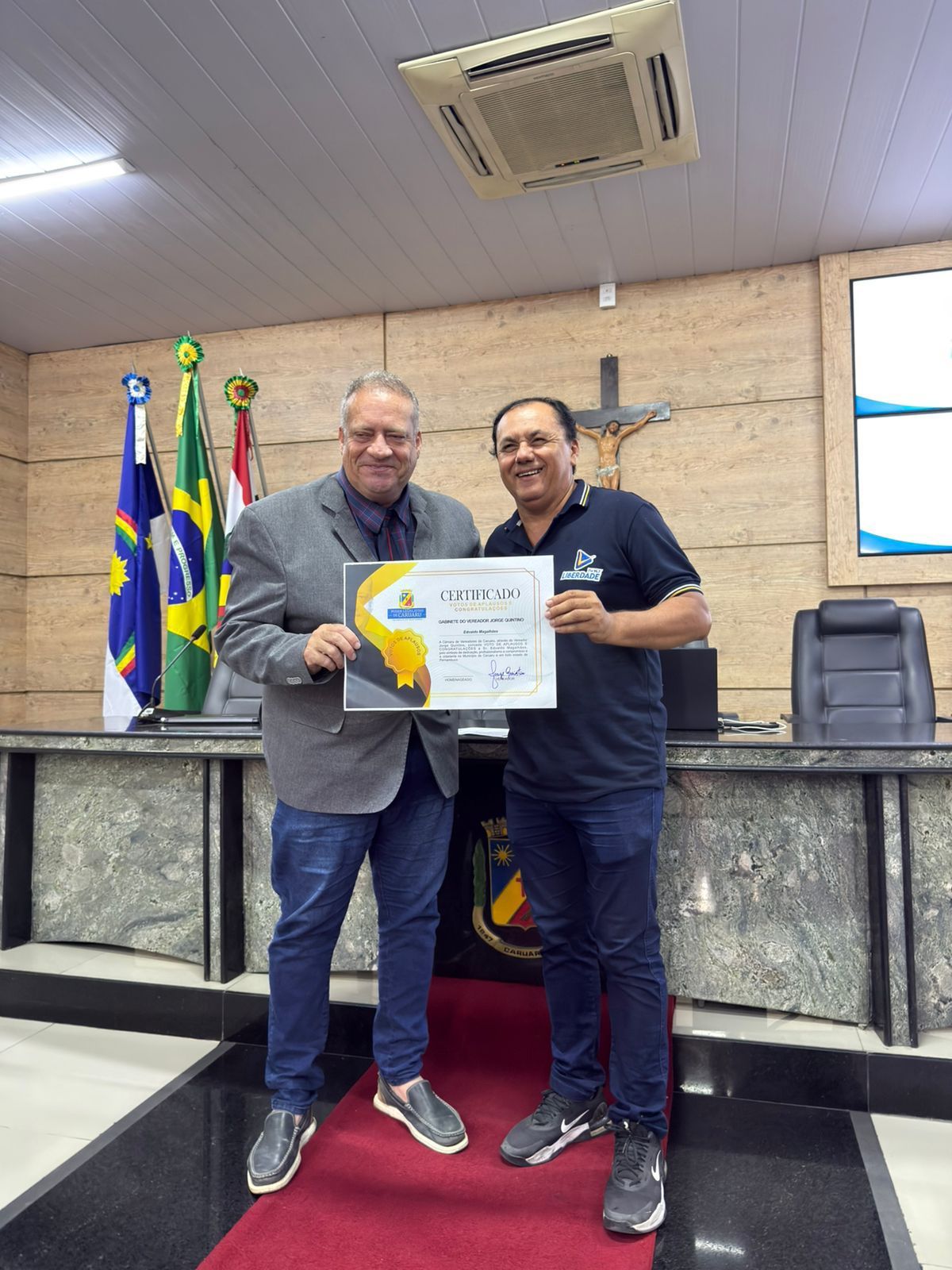 A Câmara Municipal de Caruaru realizou, nesta sexta-feira (28), uma sessão solene para conceder *Voto de Aplausos e Congratulações aos radialistas, em alusão ao Dia do Radialista (07 de novembro).* A homenagem, de autoria do vereador Professor Jorge Quintino, ocorreu por meio de requerimento aprovado em plenário, com destaque especial ao radialista Edvaldo Magalhães, reconhecido como símbolo de dedicação, profissionalismo e compromisso com a comunicação e a cidadania. Na ocasião, Edvaldo também recebeu Voto de Aplausos e Congratulações individual, em reconhecimento à sua trajetória profissional.